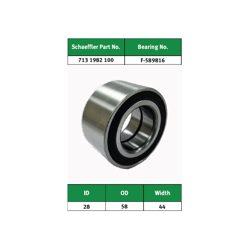 FAG Rear Wheel Bearing (Non ABS) Part No. F-589816 is suitable for Tata Indica, Indigo, Indica Vista, Manza, Bolt, Zest, Tiago, Tigor, Nexon. It is manufactured and marketed in India by Schaeffler India under thee brand name FAG Bearings. They are high quality rolling bearings, spherical plain bearings and linear products which has application in 60 industrial sectors and large number of automotive application covered by approx. 40000 part numbers.